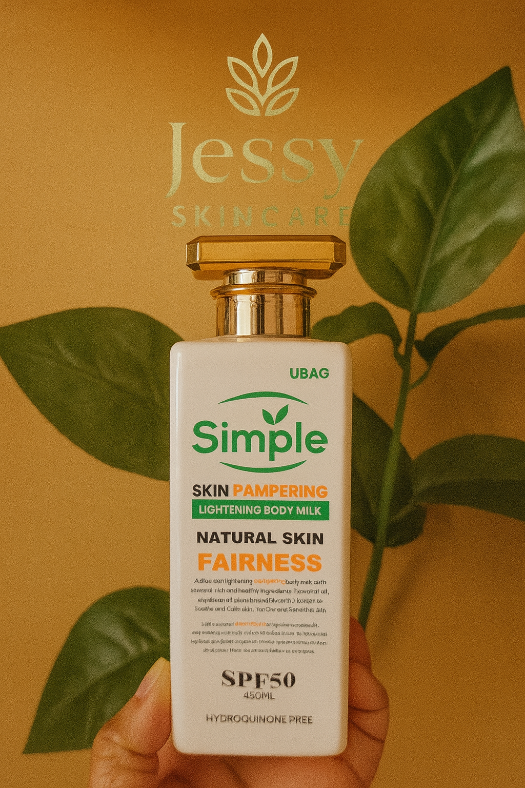 Simple Natural Skin Fairness Body Milk is enriched with natural ingredients like coconut oil, soybean oil, and plant-based glycerin to gently lighten, nourish, and pamper the skin. With SPF 50 protection and a hydroquinone-free formula, it helps achieve a brighter, smoother, and naturally radiant complexion while keeping the skin soft and hydrated.