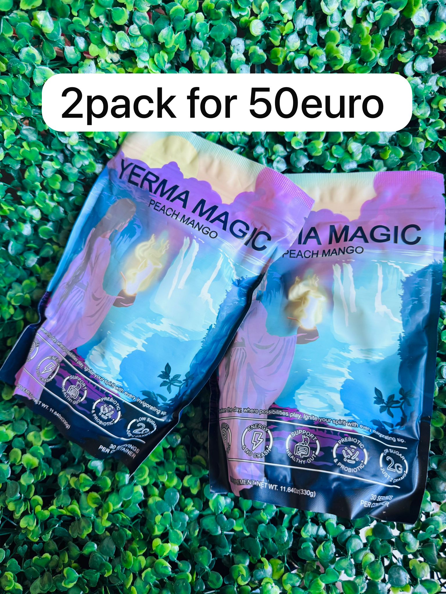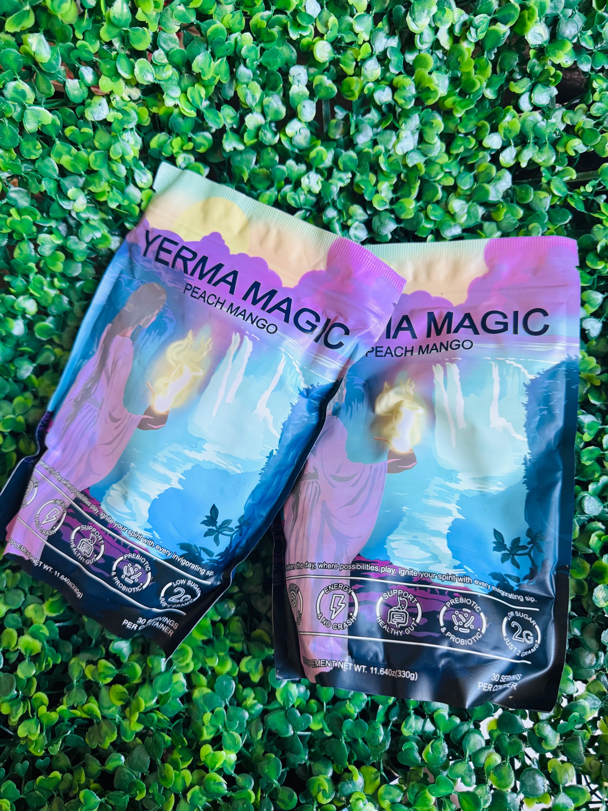 Yerba Magic is a peach mango-flavored dietary supplement designed to boost energy without the crash, support gut health with prebiotics and probiotics, and provide a low-sugar, refreshing experience. With just 2 grams of sugar per serving, it delivers a vibrant start to your day in a delicious, invigorating sip.